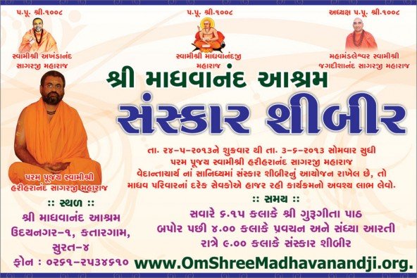 We are glade to invite for Sanskar Shibir at Surat from 24-May-2013 (Friday) to 03-Jun-2013 (Monday)