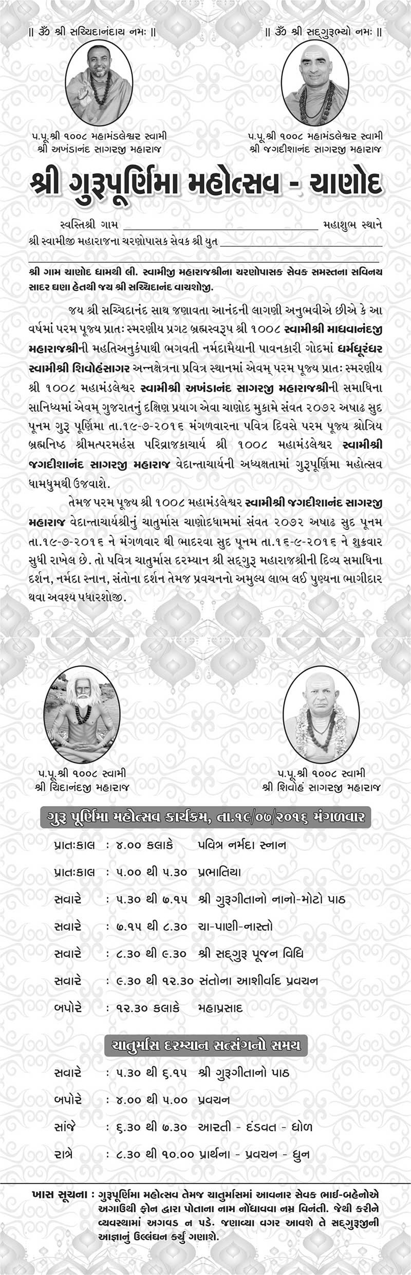 We are glade to invite for Guru Purnima Mahotsav & Chaturmas at Chanod from 19-Jul-2016 (Tuesday)